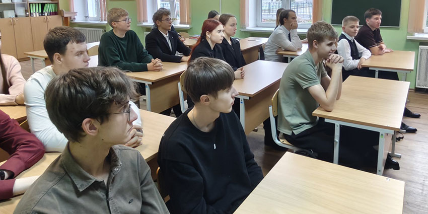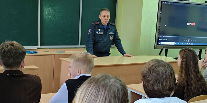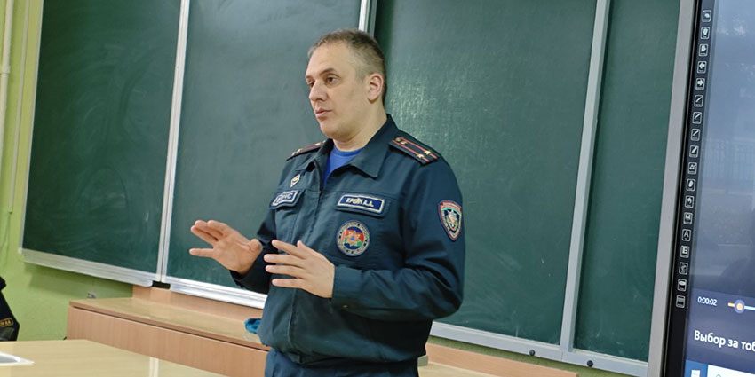 Главный специалист Минского областного управления МЧС Крейн А.А. рассказал учащимся о возможности поступления и обучения в университете, а также преимуществах прохождения службы в органах и подразделениях по чрезвычайным ситуациям Республики Беларусь.