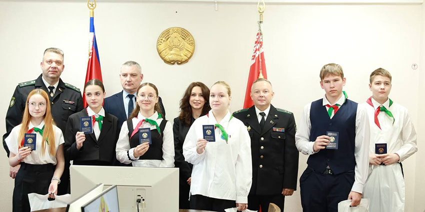 Ребята получили свои первые в жизни паспорта из рук первого заместителя Председателя комитета государственного контроля Минской области Телятицкого Евгения Вячеславовича, а также начальника управления Департамента финансовых расследований КГК Республики Беларусь по Минской области и городу Минску, полковника финансовой милиции Дягилева Дмитрия Станиславовича. Почётные гости призвали молодежь оставаться активными и напомнили, что именно на их плечах лежит ответственность за будущее Беларуси.